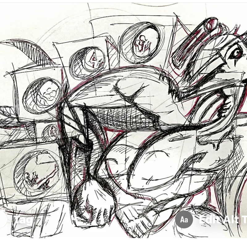This is the space where I tell you that I've been drawing since before I could walk. That when I was a child my father would travel on business and I was inconsolable for his absence and that the only way to calm me down was to draw him. That three circles and a squiggle for a moustache was enough to pacify me. It's where I tell you that the only way I survived school was by filling my notebooks with doodles and how the only real dreams I've had for my bucket list is having a space where canvasses the size of walls adorn my days and hang in galleries. It's not the riches or the fame or notoriety that I find so alluring. I can't explain it. I just see a gallery and know. Not believe. I know my work belongs there. I don't know why. It just does.